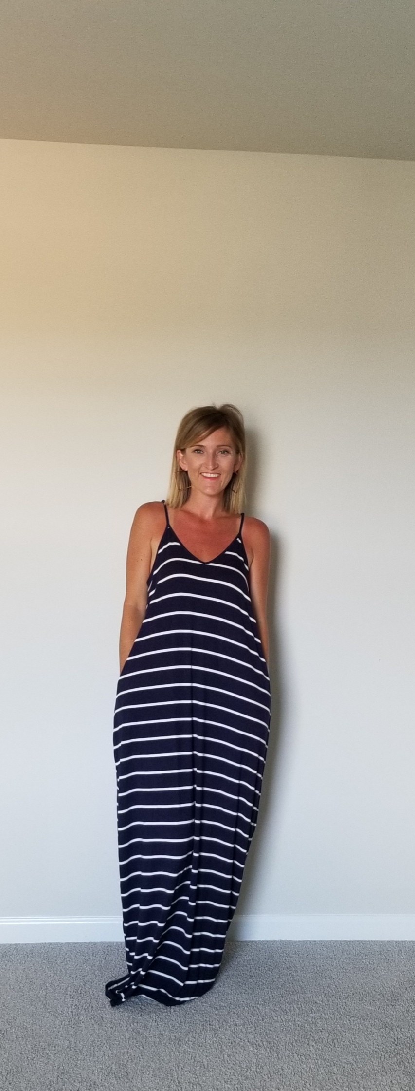 Blue and White Striped Maxi Dress
